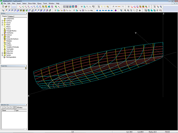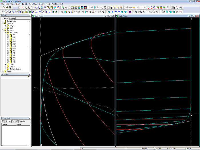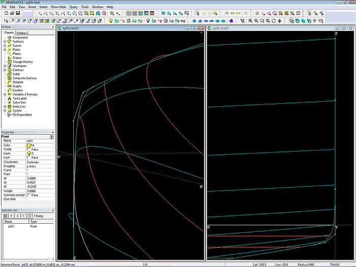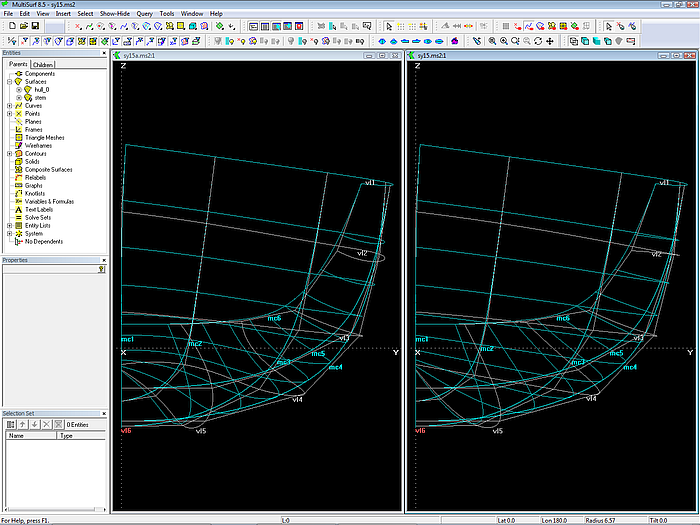 This article shows on the basis of the model sy15.ms2 by what considerations the author creates a round bilge hull in MultiSurf. This is not about making a hull with specific dimensions or shape features. But it comes to show which method is practical, so in the end it is on the screen what you imagine.