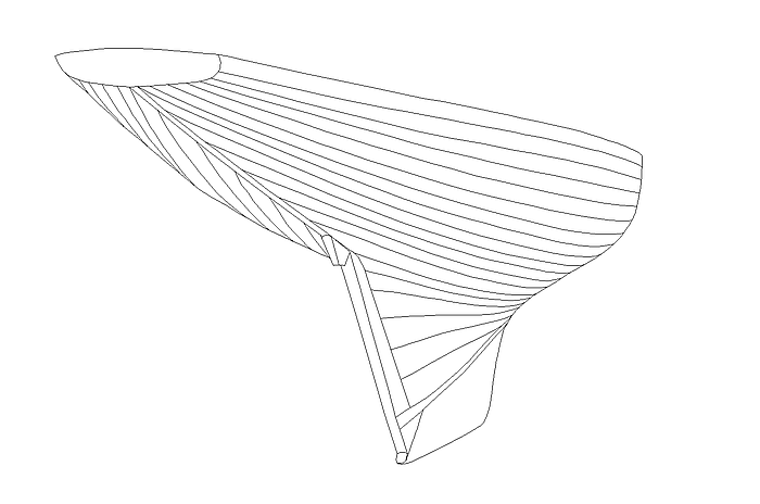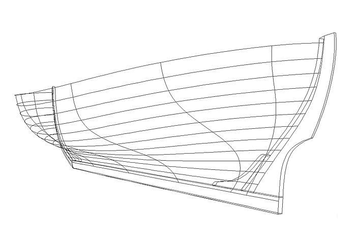 The shape of the boat suggests it: there is no rapid change of curvature in longitudinal direction, no discontinuities. A C-spline Lofted Surface is analogous to carvel, clinker or strip-planking construction: master curves (support curves) are „planked“ with C-spline Curves (cubic splines). A C-spline Curve is a mathematical model of a spline or batten.
