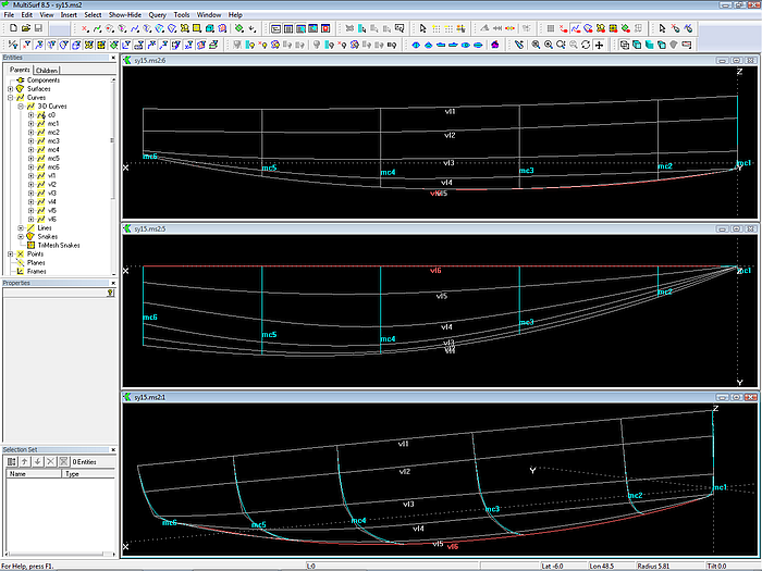 In the model there are 3 Entity Lists: edit_hull_0, view_boat_0, view_lines_0. An Entity List contains the names of objects.