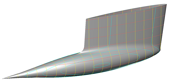 A disadvantage in the author´s view is the display of the station contours in Wireframe or Shaded View. It turns away the eye from the objects which controls the shape. Hiding the contours is not feasible, the Offsets View will be empty as well as the Hydrostatics window.