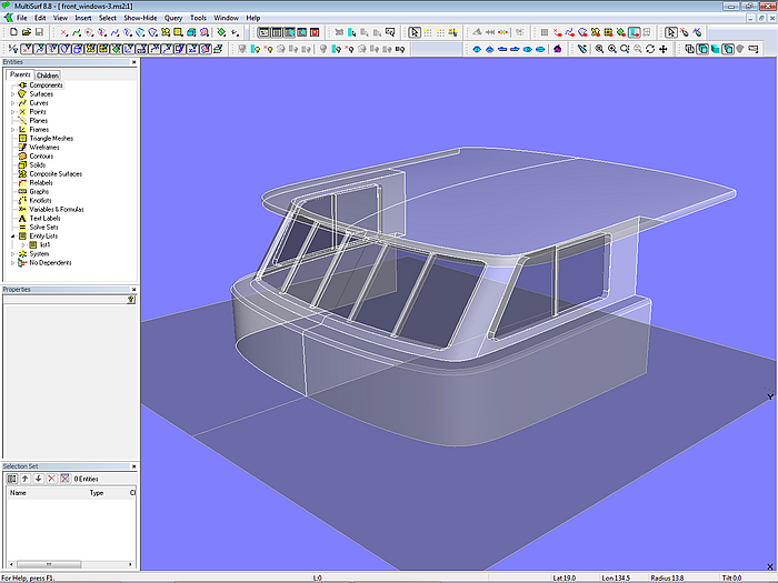 Small boats have no deck or cabin, but those are indispensable parts of larger vessels. This article explains various methods to model surfaces for decks and superstructures in MultiSurf.