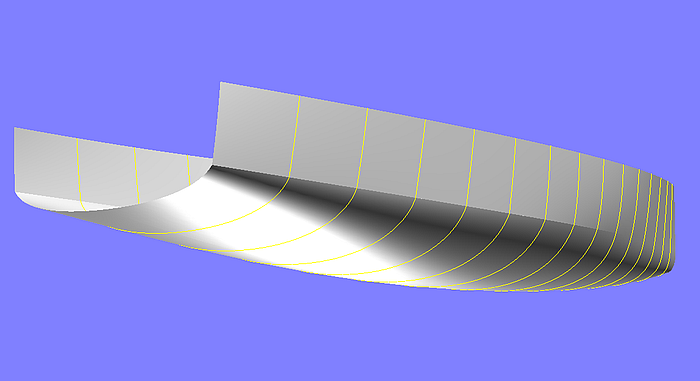 The modeling of a sailboat hull with a partial length longitudinal chine is the topic of tutorial 3 “Round Bilge Hull With Vanishing Chine”.