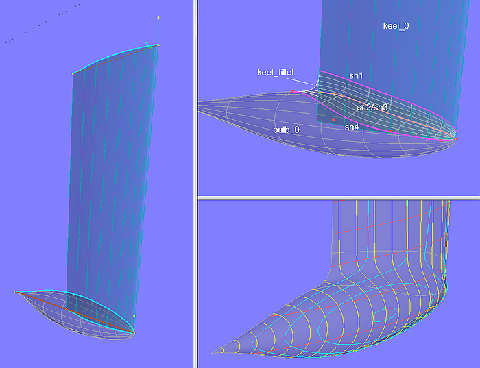 The final portions of keel fin and bulb, which are not covered by the fillet, are created by the SubSurface keel and the SubSurface bulb.