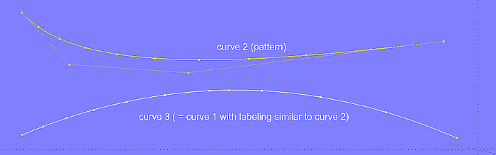 The component creates a curve of the same shape as curve 1, but with a similar labeling to curve 2 (pattern). For detailed derivation of model construction see „Advanced Tutorials/ Workshop/ Alkmaar 2017/ Selected Support Topics/ Similar Label“.