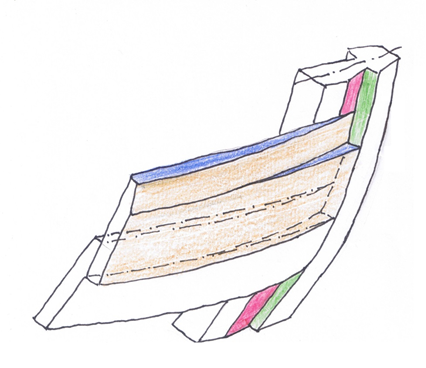 Due to the overlapping of the planks, we must start with the lowest plank. Its inner side runs with its lower edge in the rabbet of the stem and keel, and its upper edge lies on the offset surface. For all subsequent planks, the inner lower edge runs on the outer side of the previous plank, and its inner upper edge lies on the offset surface.