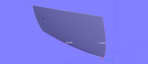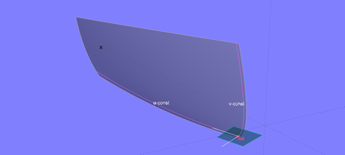 If two edges of a surface meet tangentially, the angle between the tangents to the parameter curves u_const and v_const corresponding to its uv-coordinates is zero at the connection point. The tangential plane degenerates into a line; a surface normal, and thus an offset surface, does not exist for this point.