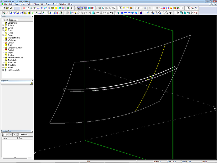 - rings on the hull (deck) cross section, located at the start and at the end of the coutout. These rings will be used lateron for SubSnakes, when creating the frame outline boundary.