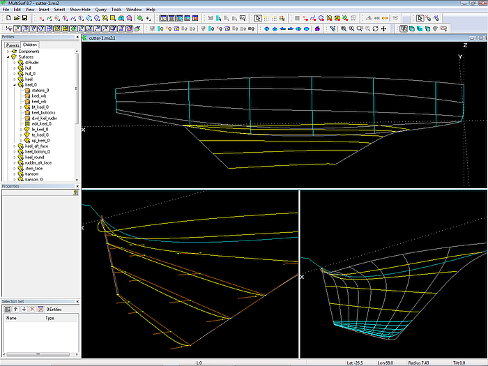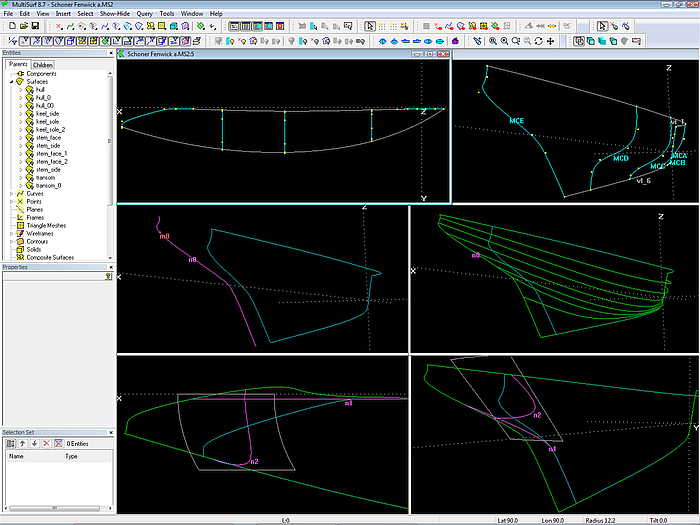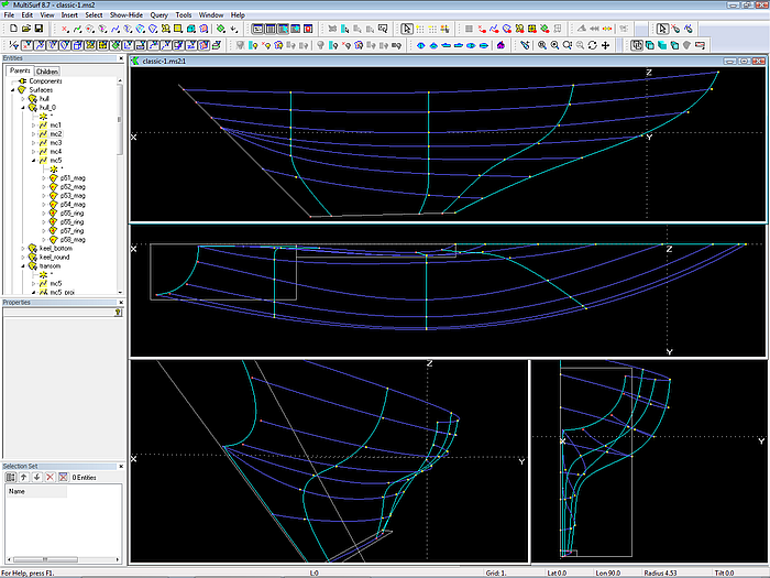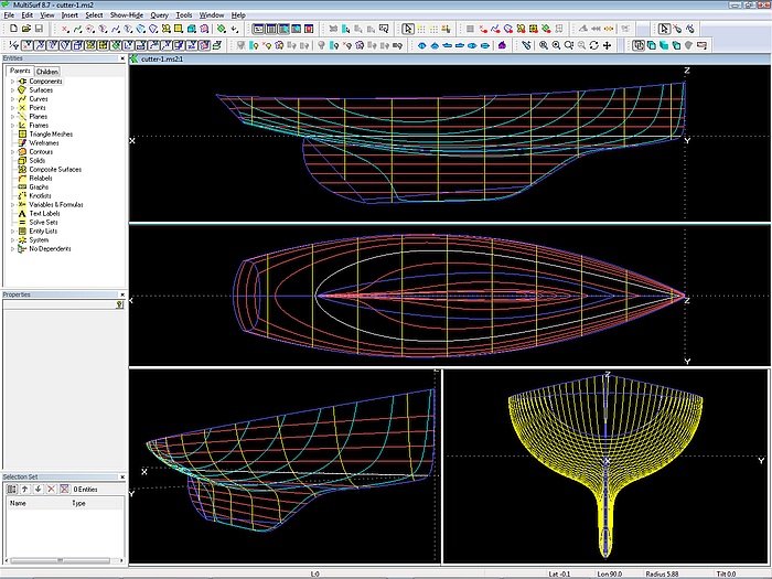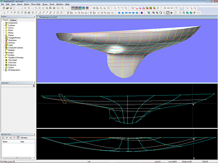 This article has in view to show methods how to create classic yacht hull forms in MultiSurf. It is not about designing a hull with specific dimensions and shape, but explains the pros and cons of various procedures, so in the end you can decide which method will suit your needs best.