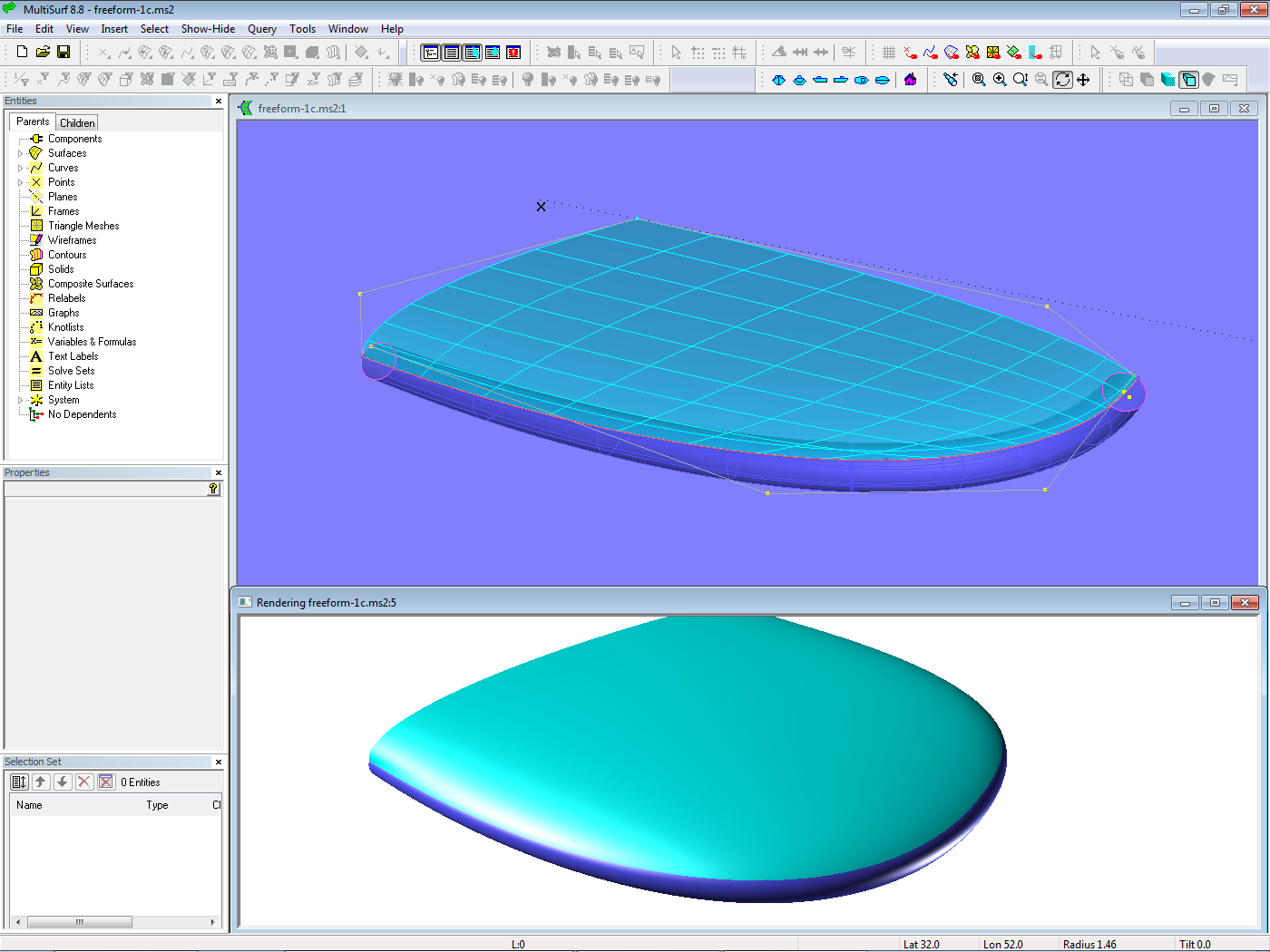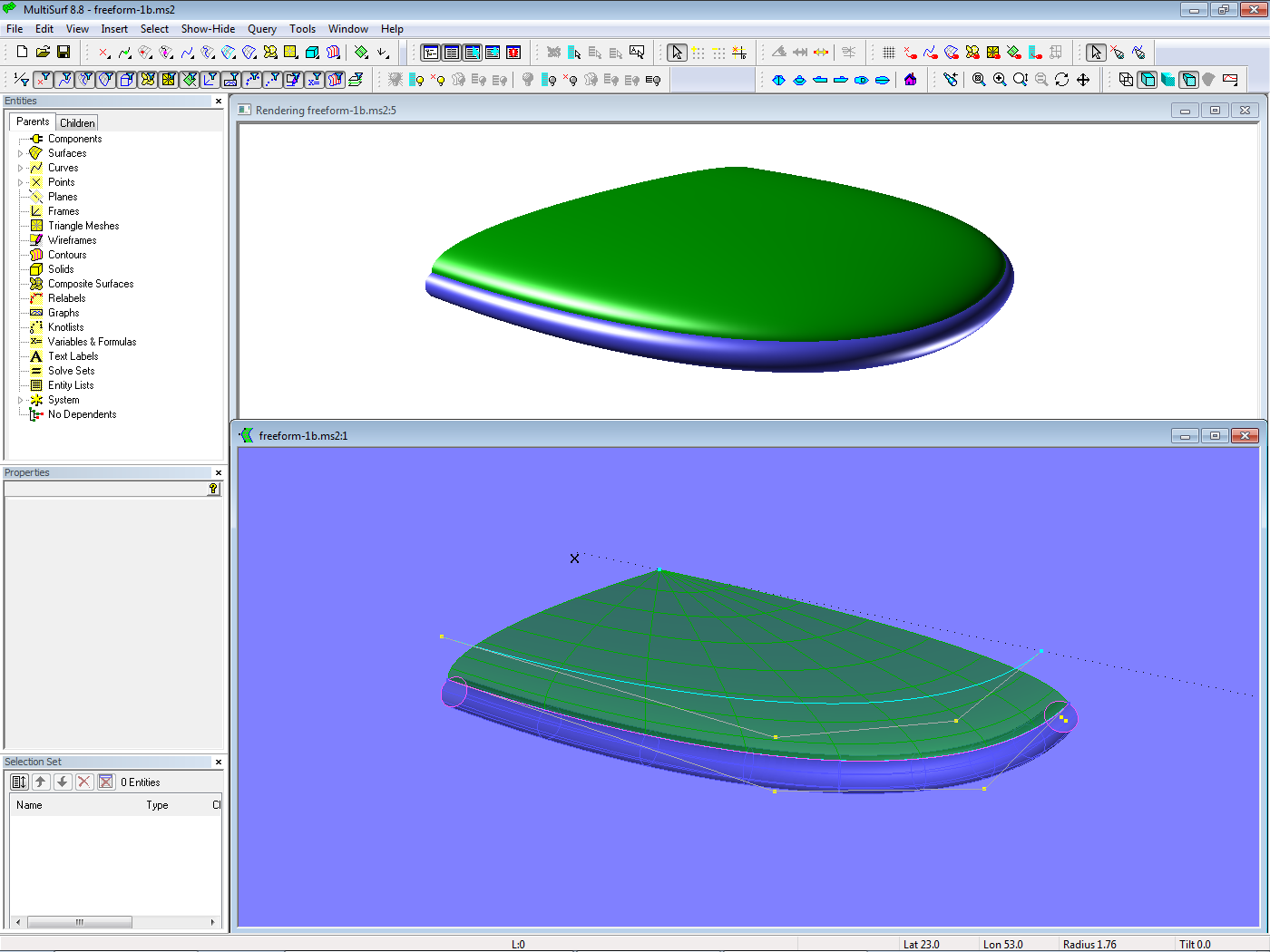 2 B-spline Mcs and one point supports the B-spline Lofted Surface. Mc1 defines the planform outline, mc2 the size of the bubble.