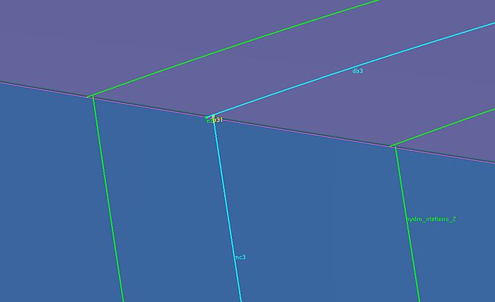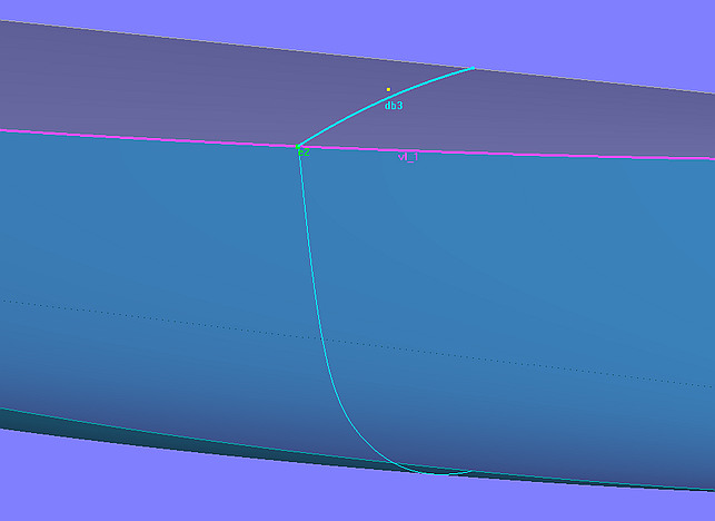 Only after some time it was found, that the third mc of the deck (db3) apparently started with the first cp of mc3 of the hull. In fact, the first cp of db3 is an XYZBead (e2) on the vertex curve vl_1.