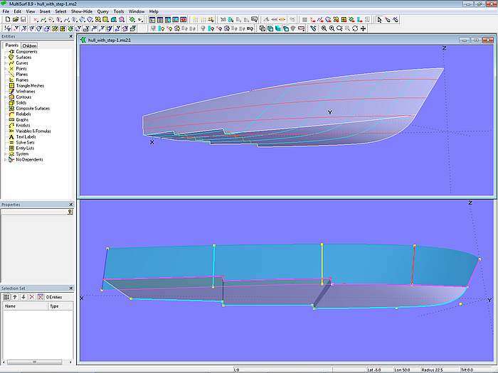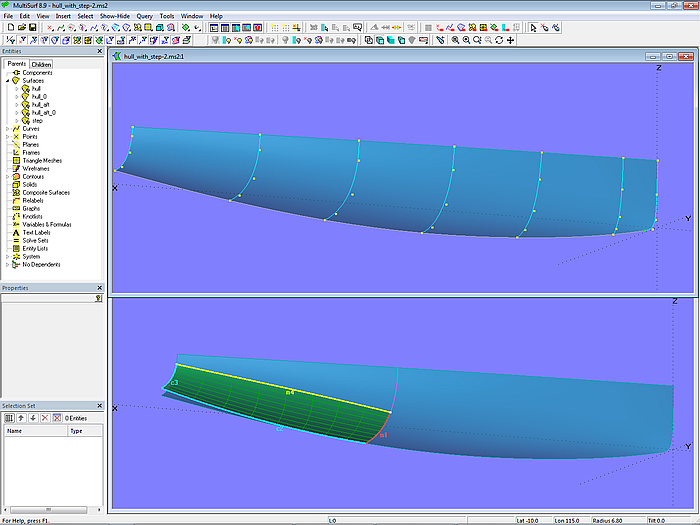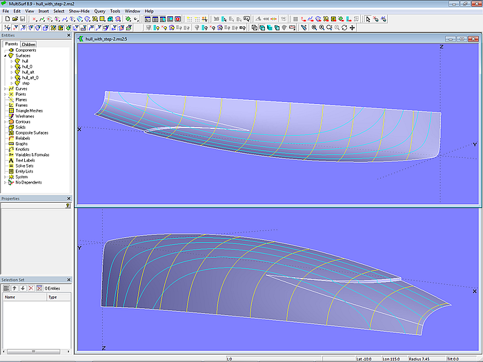 In model hull_with_step-2.ms2 an example of a sailboat hull with a step is shown.